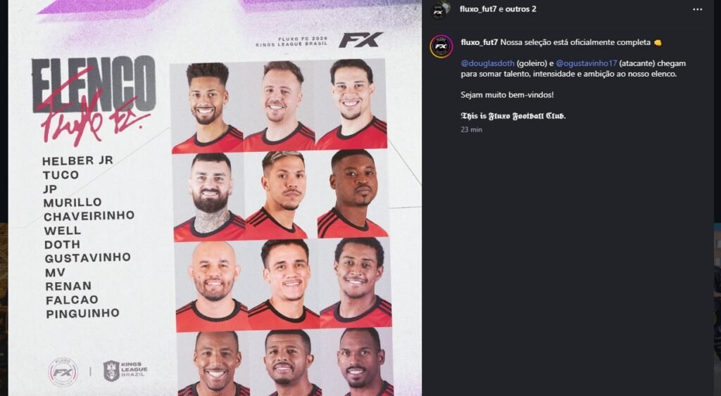 O Fluxo optou por manter o seu “esqueleto”. E isso não é detalhe. Em um formato acelerado como o da Kings League, onde entrosamento pesa e decisões são tomadas em segundos, preservar uma base que já passou por pressão competitiva pode ser um diferencial silencioso. Não começar do zero é uma vantagem que, às vezes, só aparece quando a bola rola.